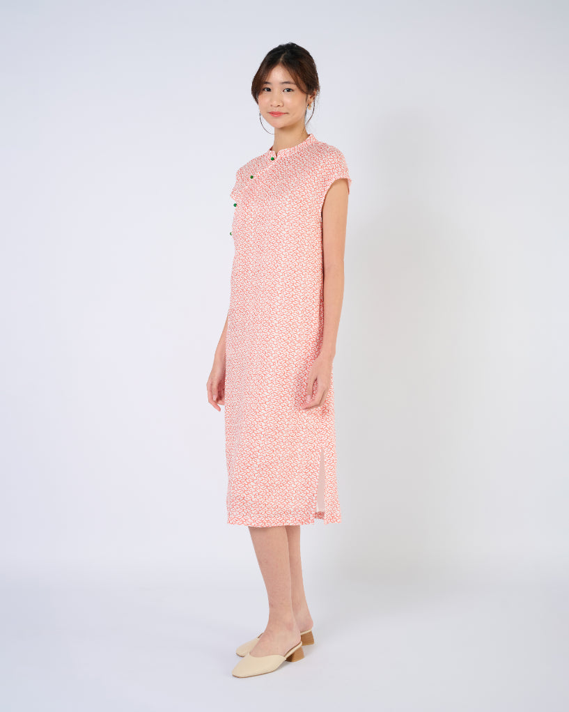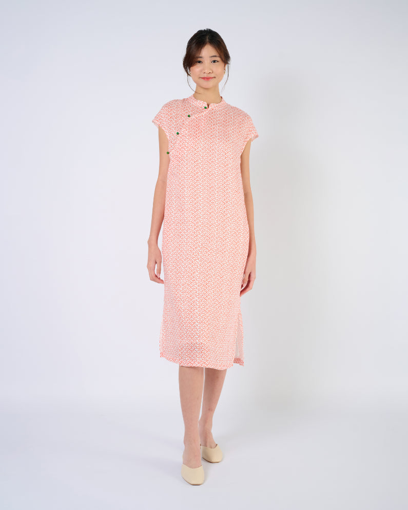 Cap Sleeve Cheongsam Dress in Auspicious Cloud