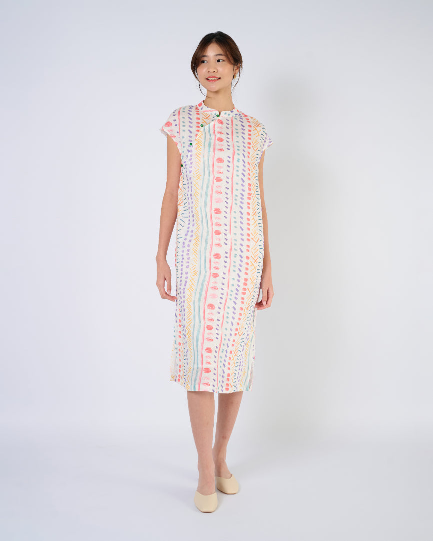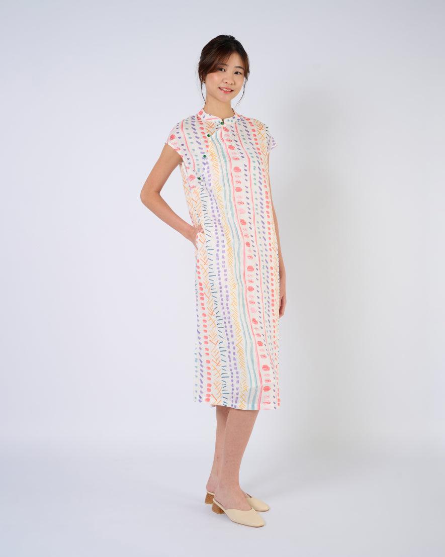 Cap Sleeve Cheongsam Dress in Multi Colour