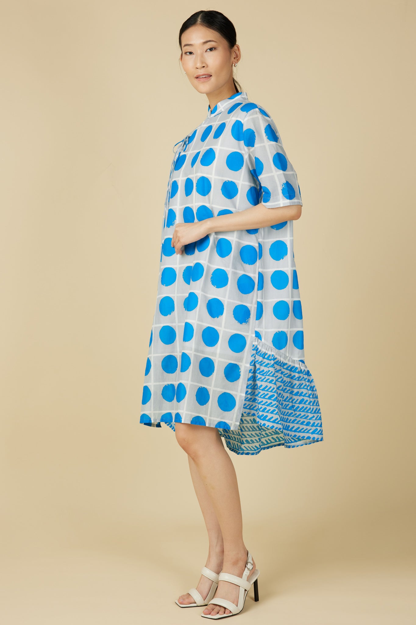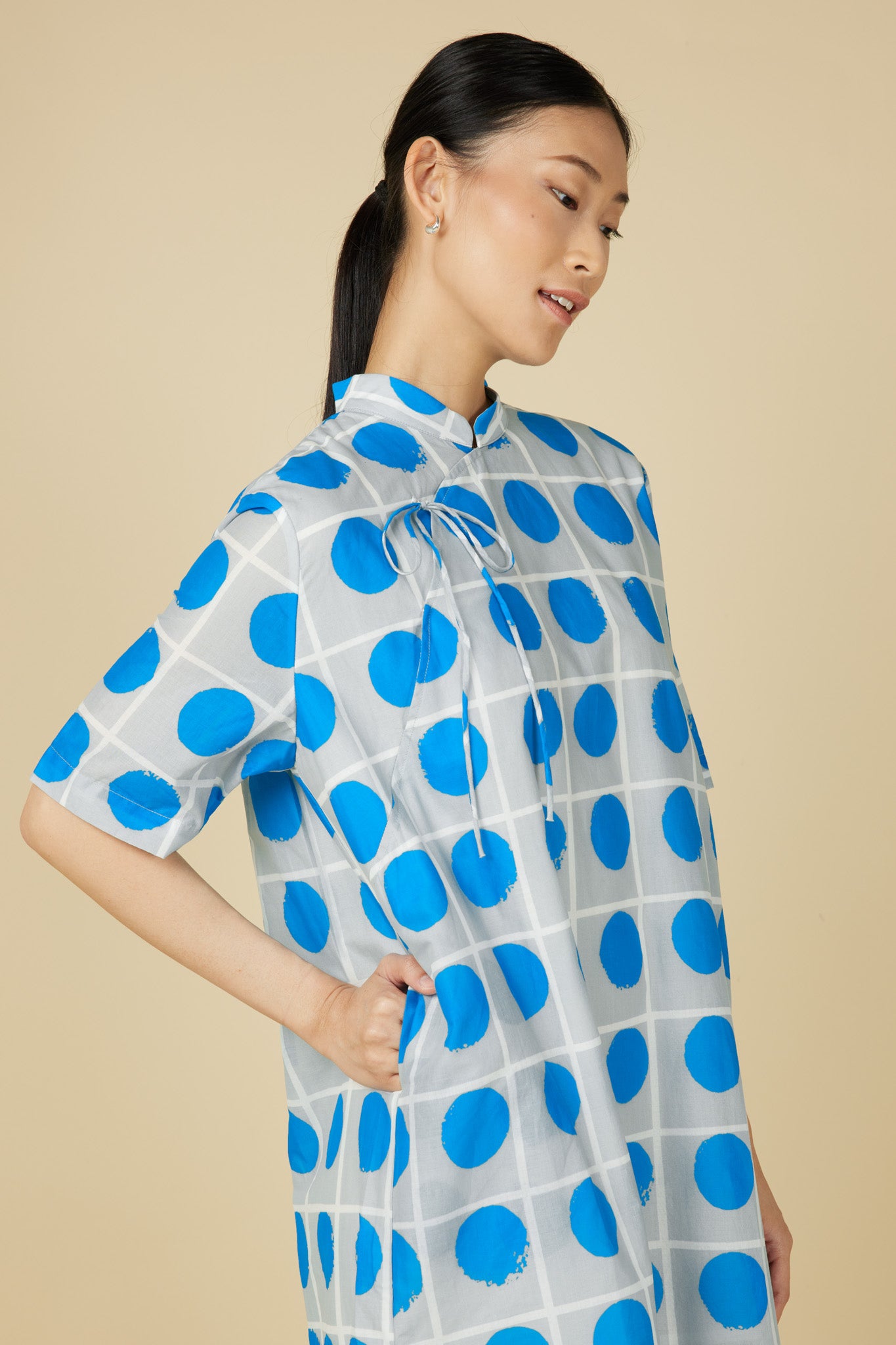This casual cheongsam maxi dress is one you'll want to reach for again and again. This silhouette features a relaxed fit, two side pockets and short sleeves, as well as low chinese collar. Wear this number on its on or as a long top with matching bottoms. The dress in lined with soft cotton fabric.