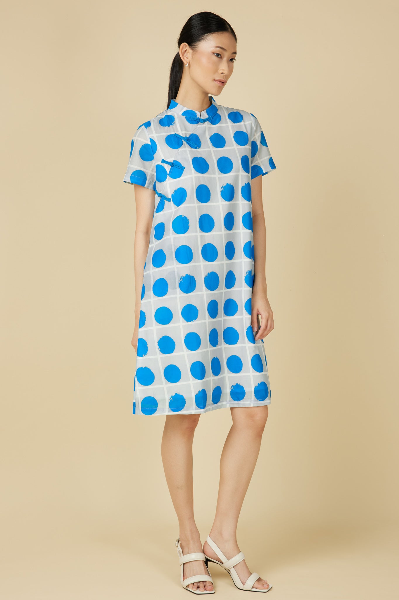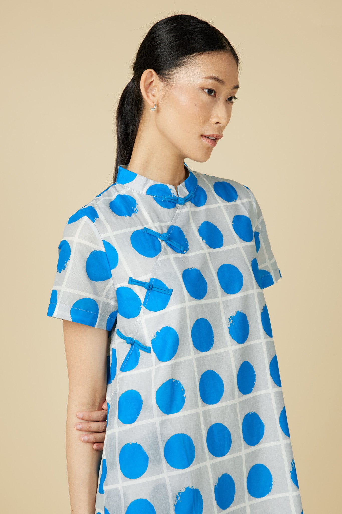 This casual cheongsam midi dress is one you'll want to reach for again and again. This silhouette features a relaxed fit, two side pockets and short sleeves, as well as handmade Chinese frog buttons. Wear this number on its on or as a long top with matching bottoms. The dress in lined with soft cotton fabric.