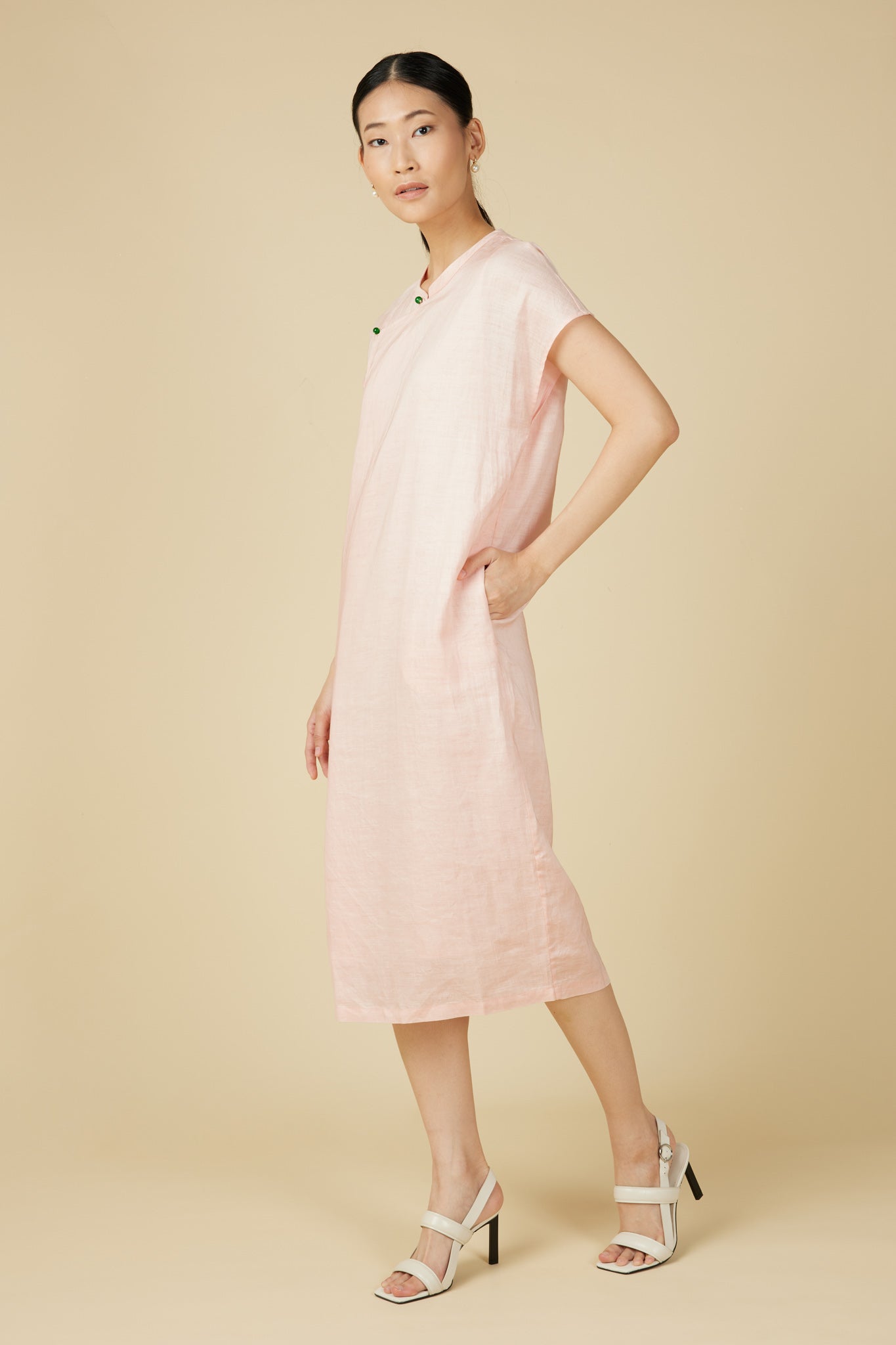 Minimalist Cheongsam Dress in Light Pink