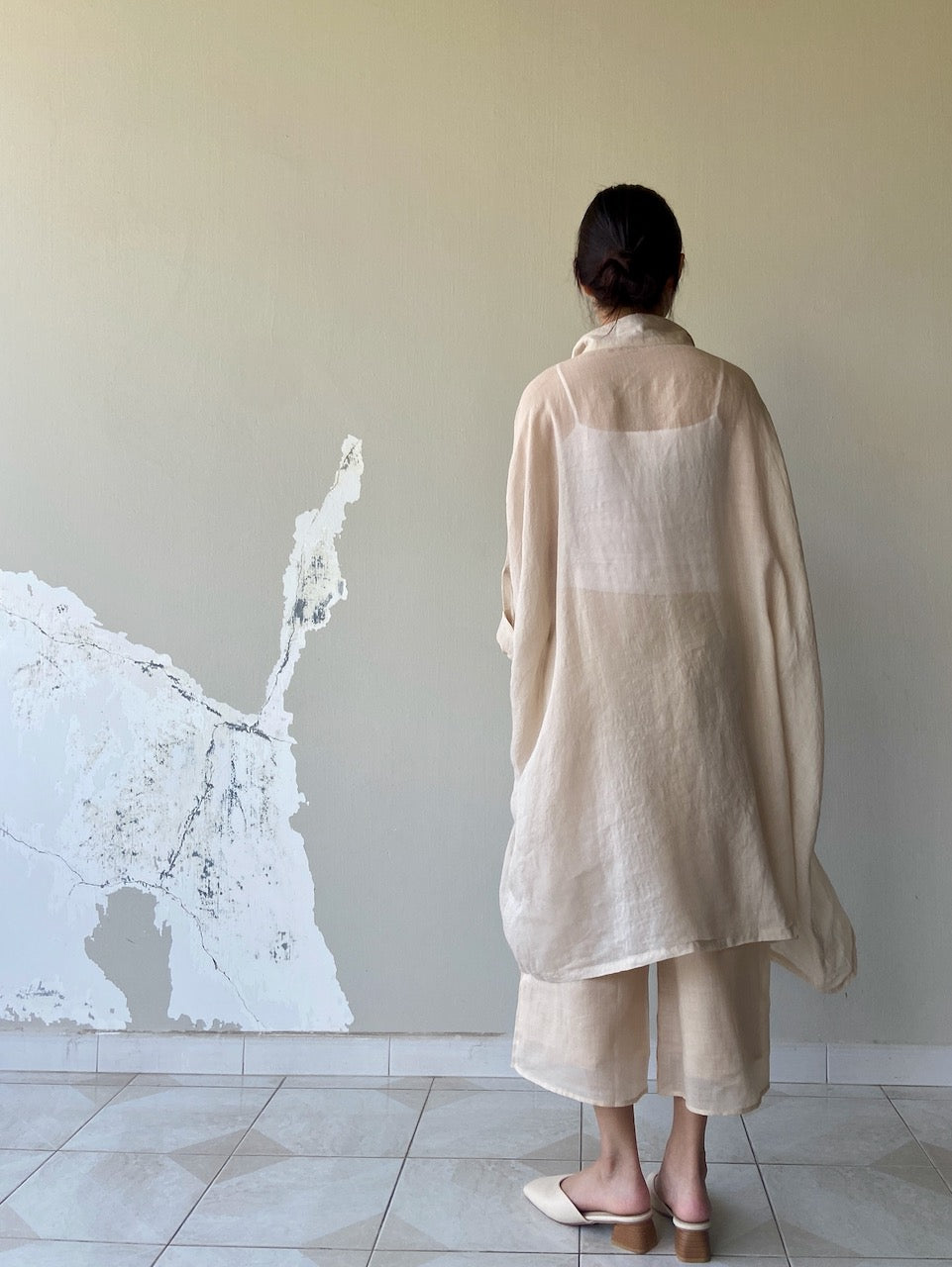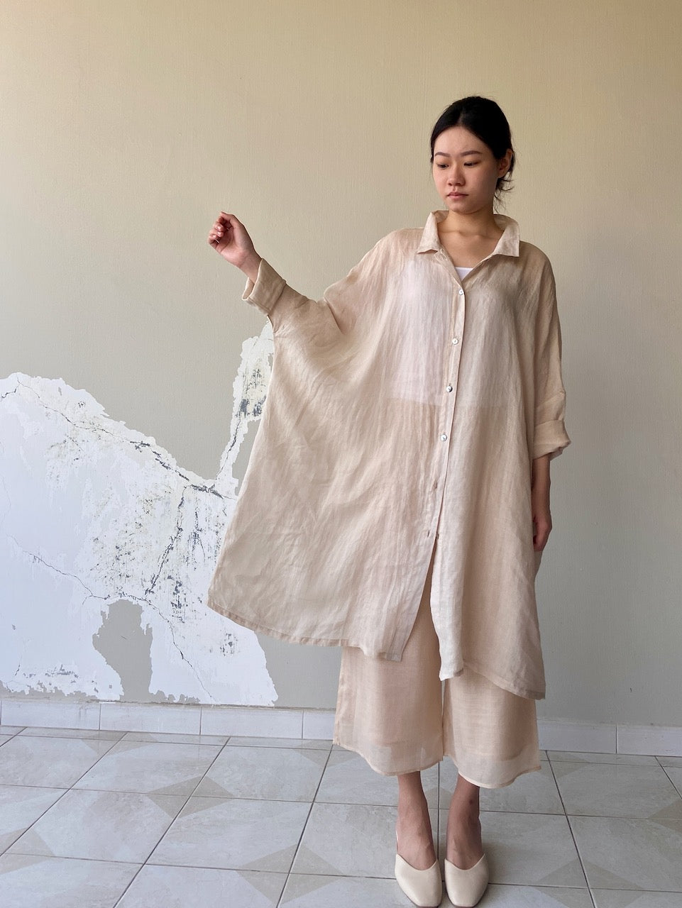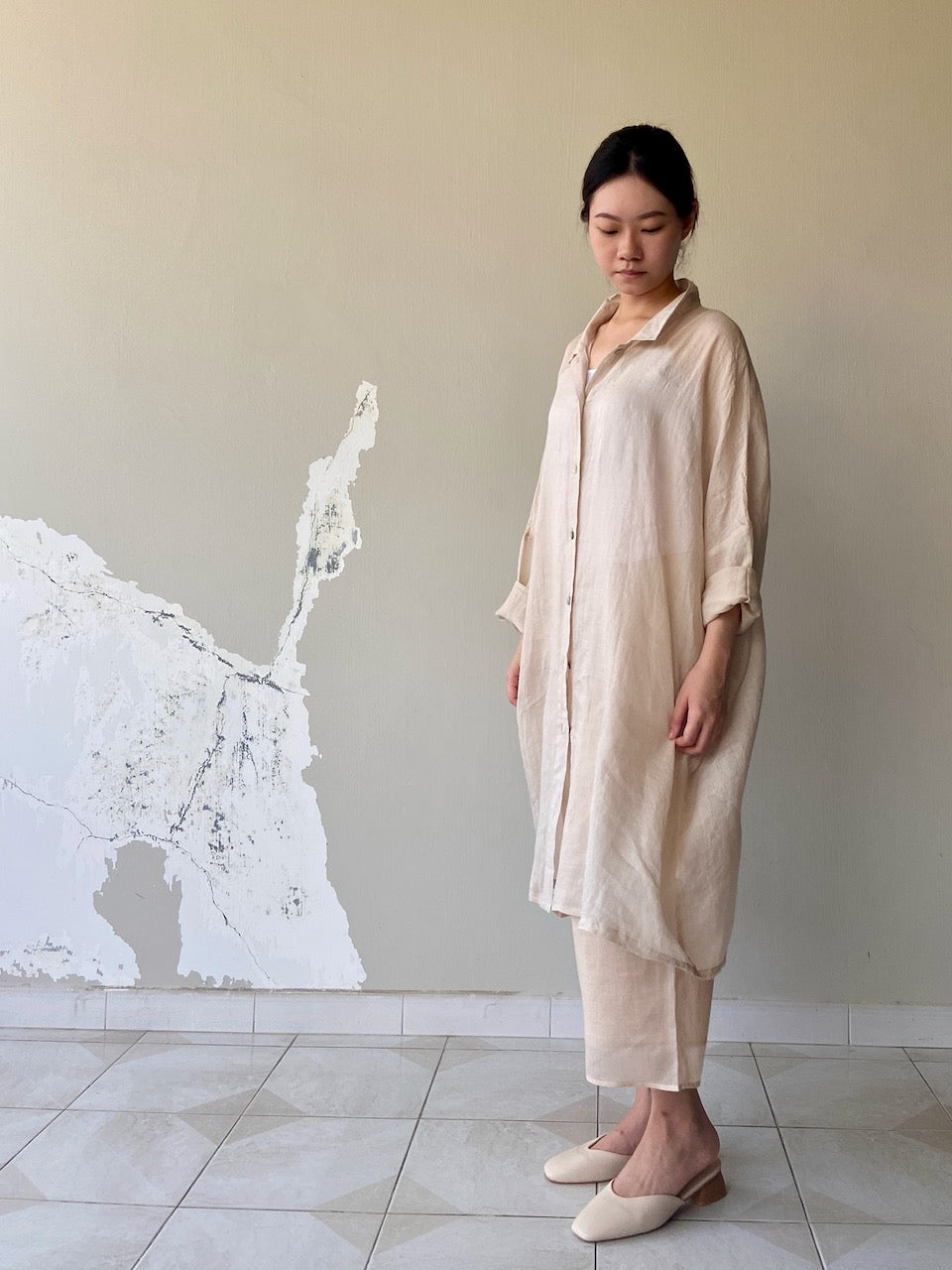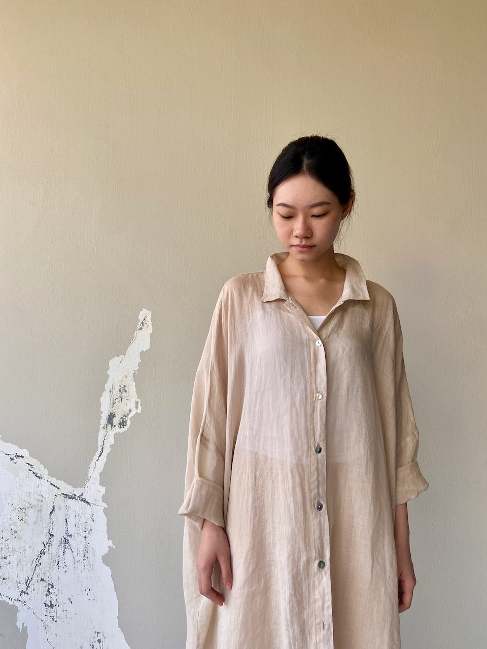Ramie maxi shirt dress in beige. Loose fit as usual, comfortable and elegant!
