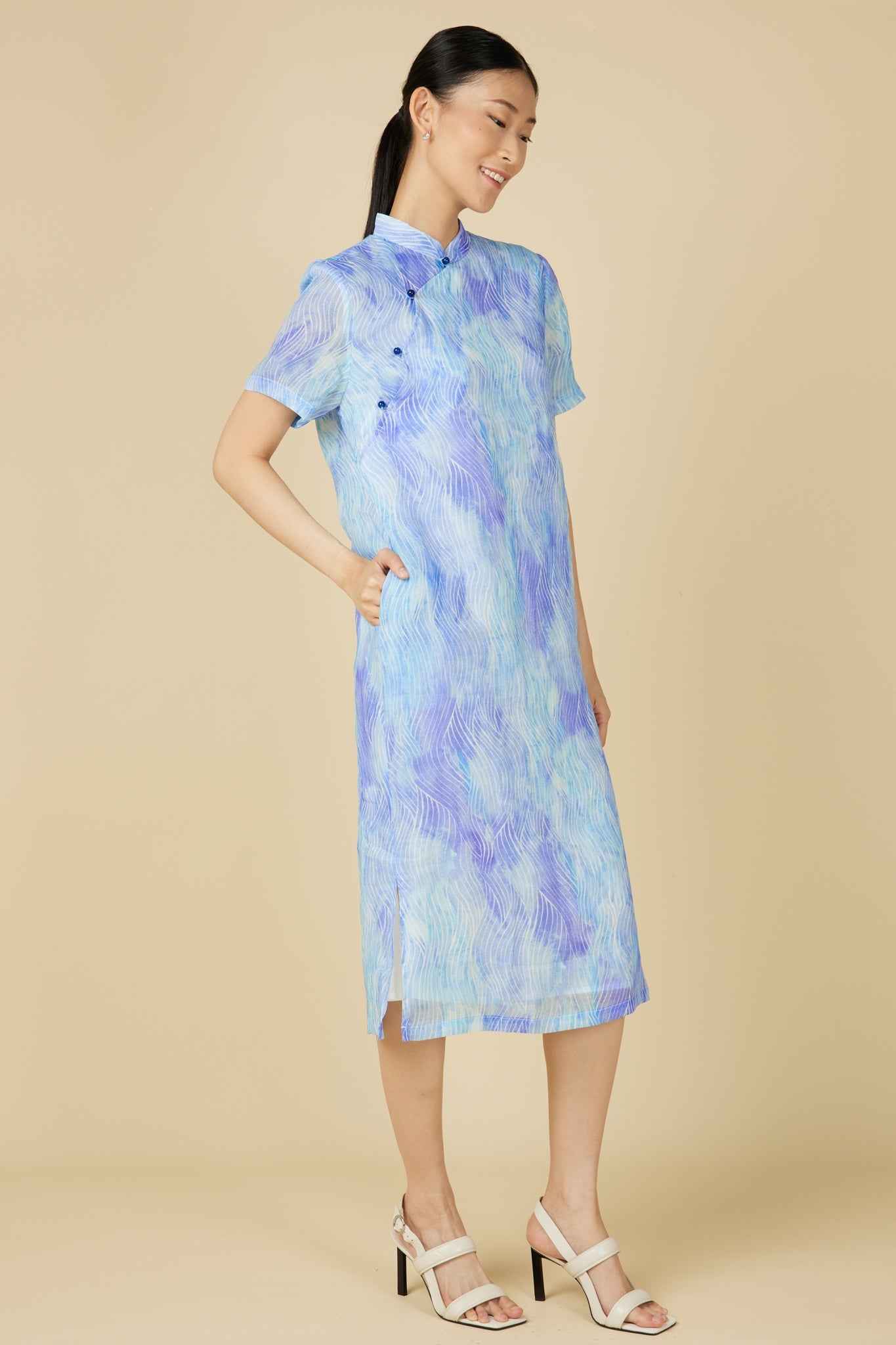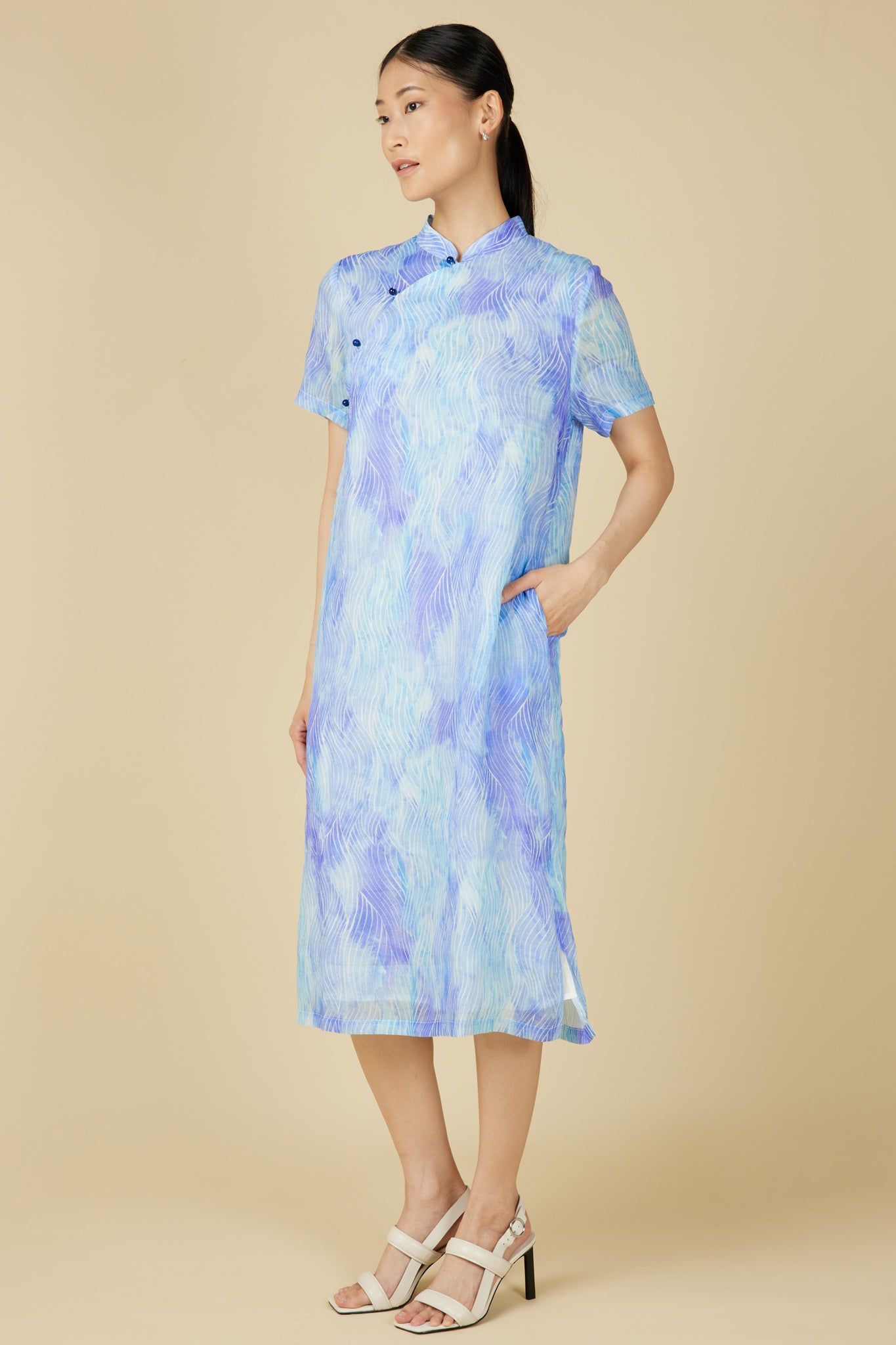 Short Sleeve Cheongsam Dress - Abstract Waves