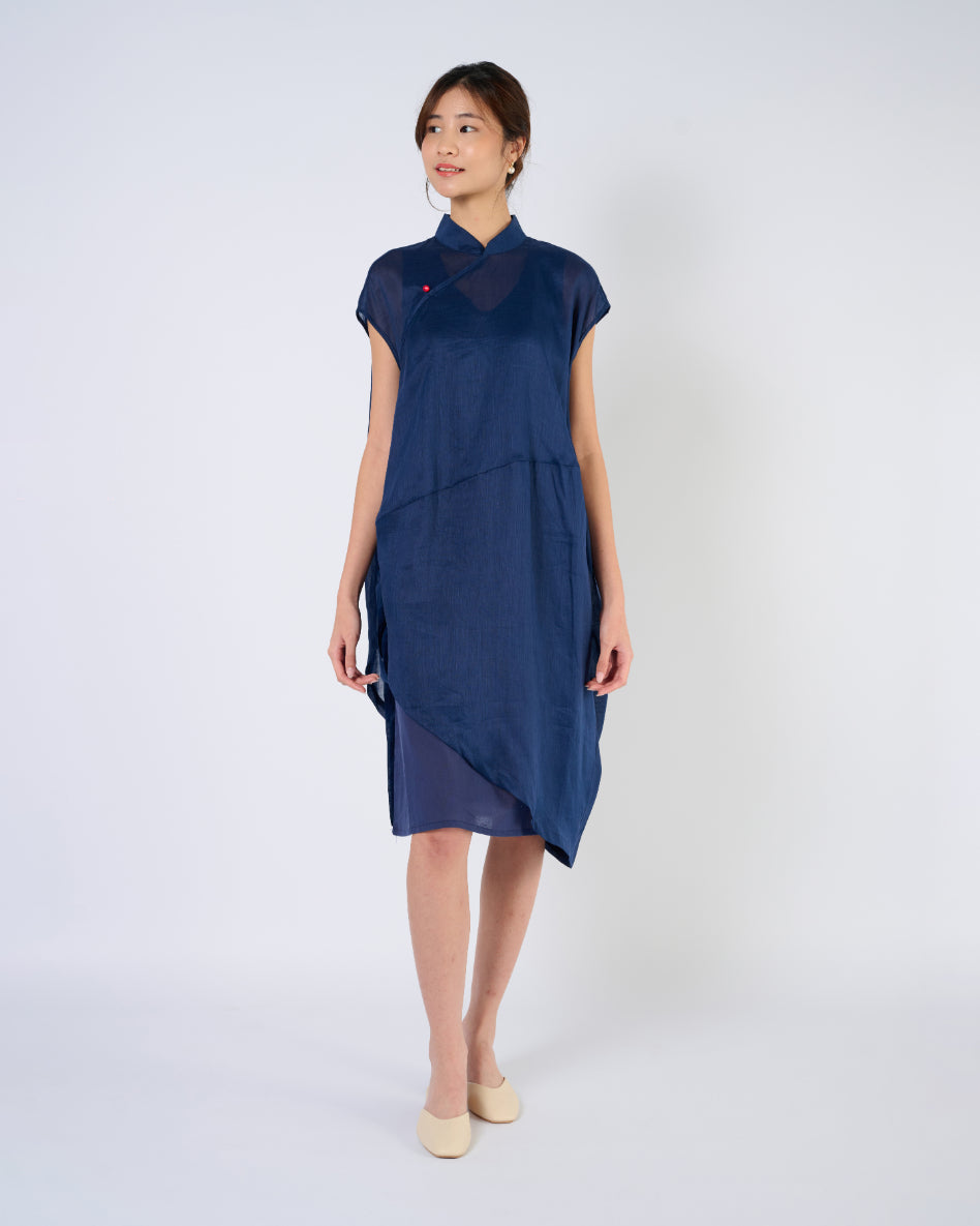 Cheongsam Cocoon Dress in Dark Blue