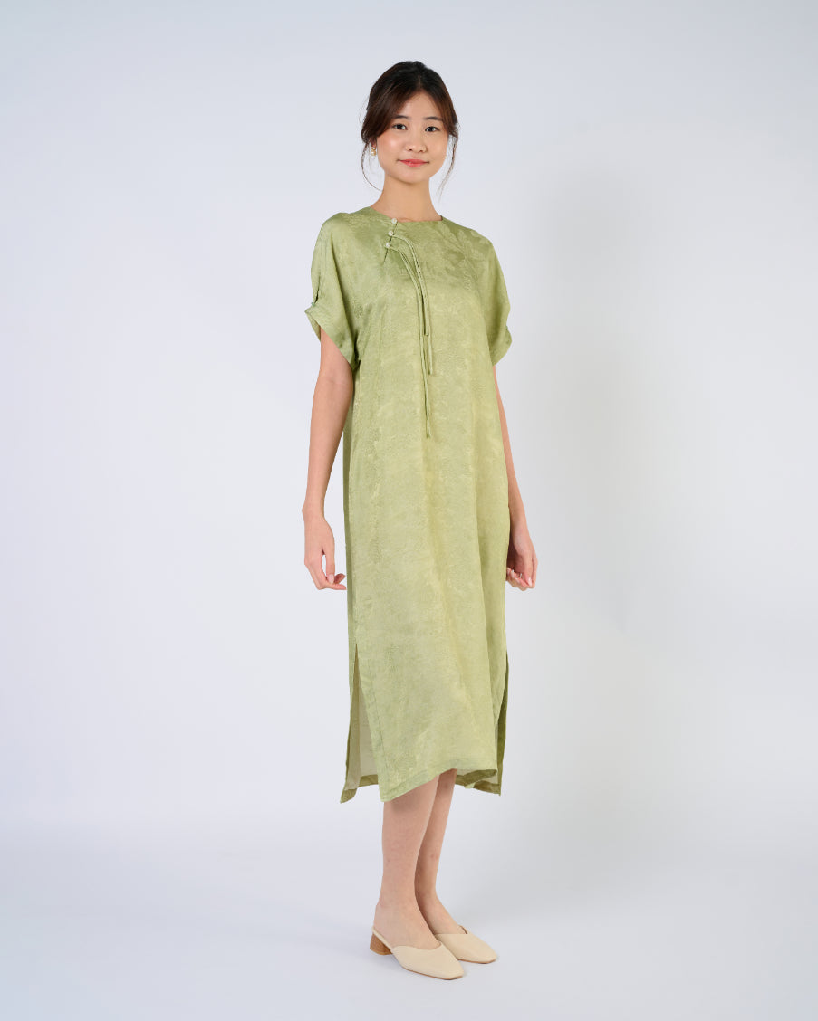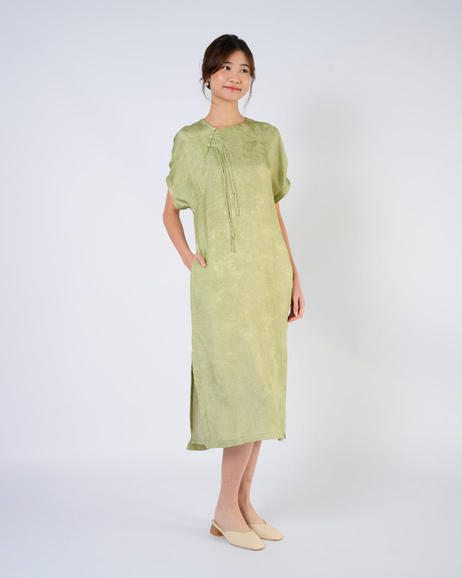 Bamboo Green Jacquard Silk Cheongsam Dress
