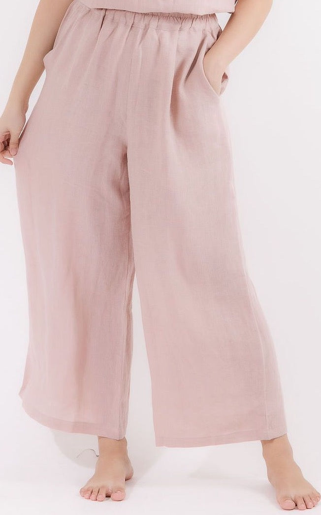 Linen Wide Leg Pants in Dusty Pink