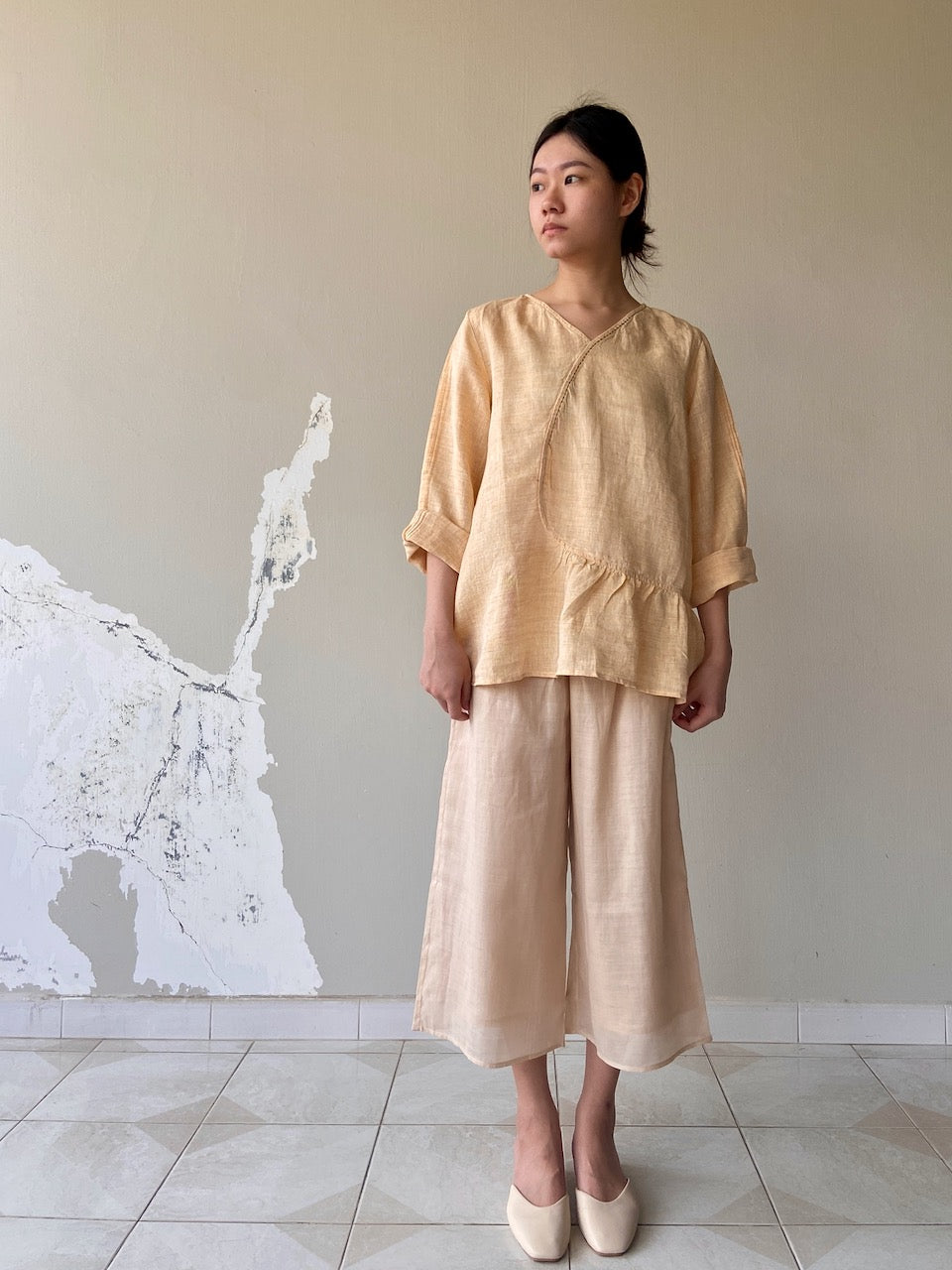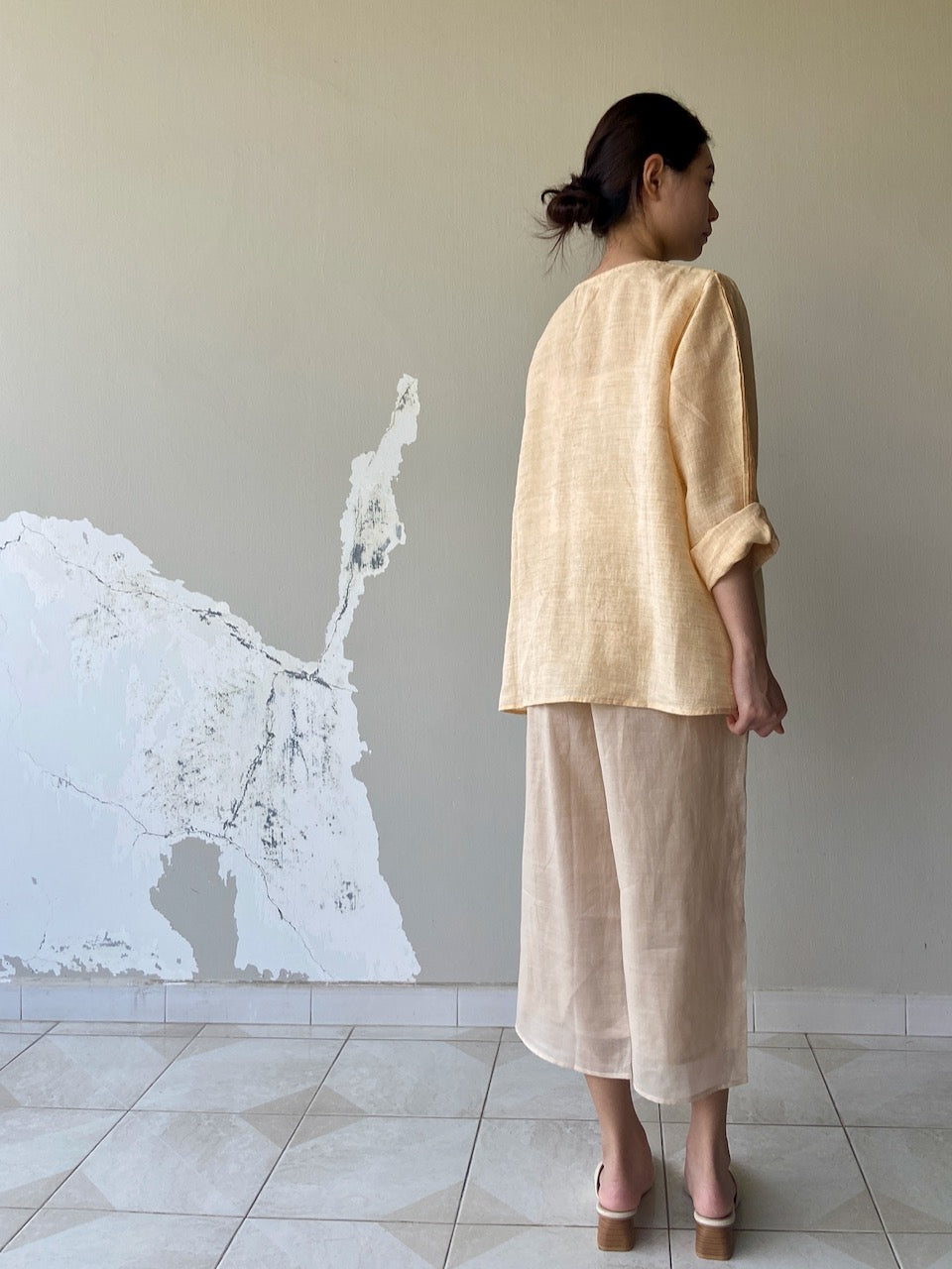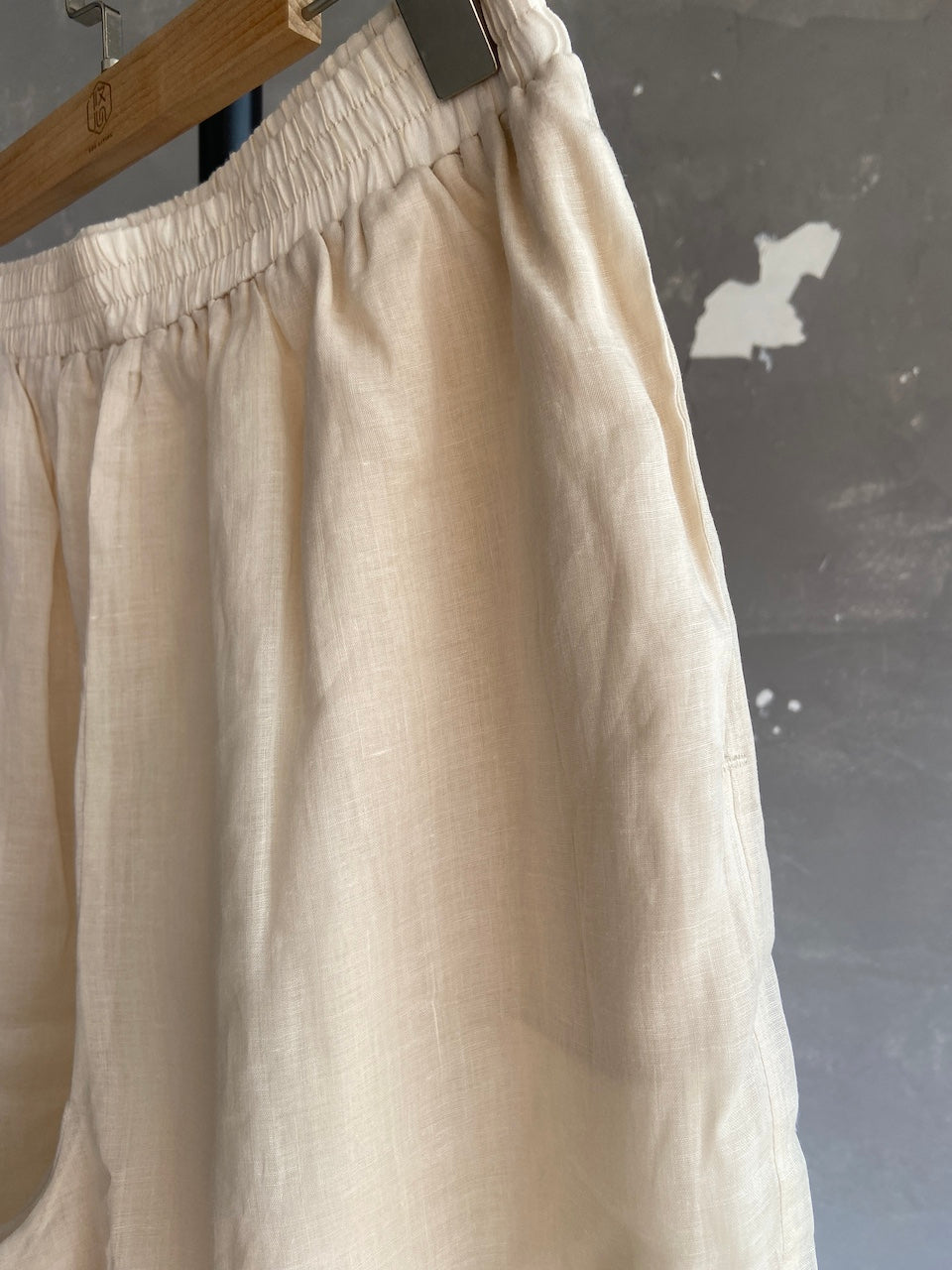 Comfortable ramie ankle pants; two side pockets; cotton inner layer.