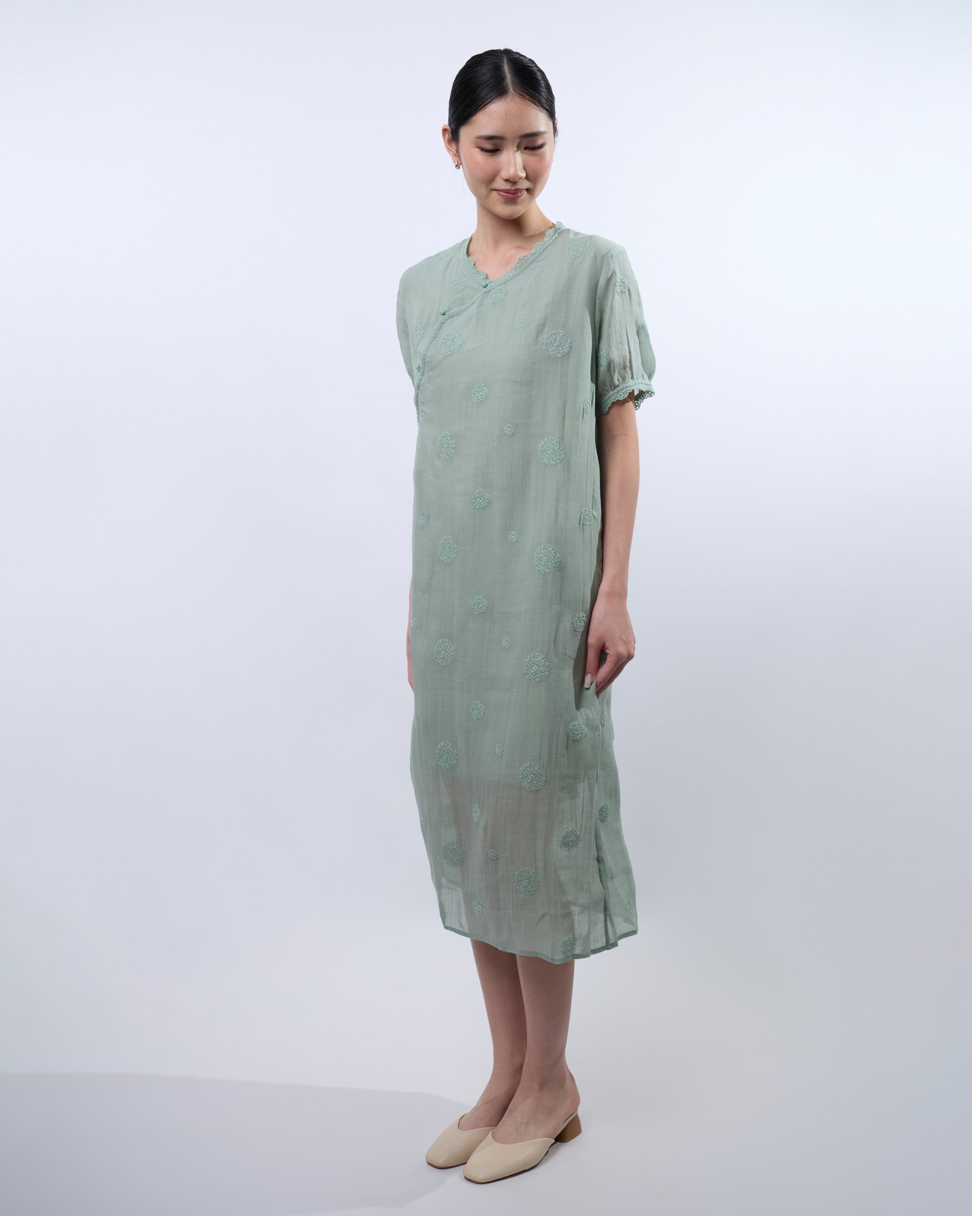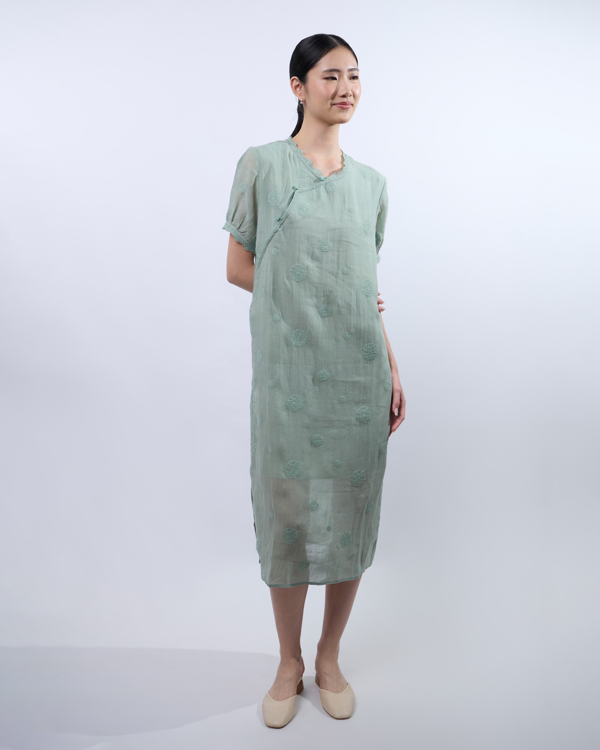 Embroidered V-neck Cheongsam Qipao Dress in Green
