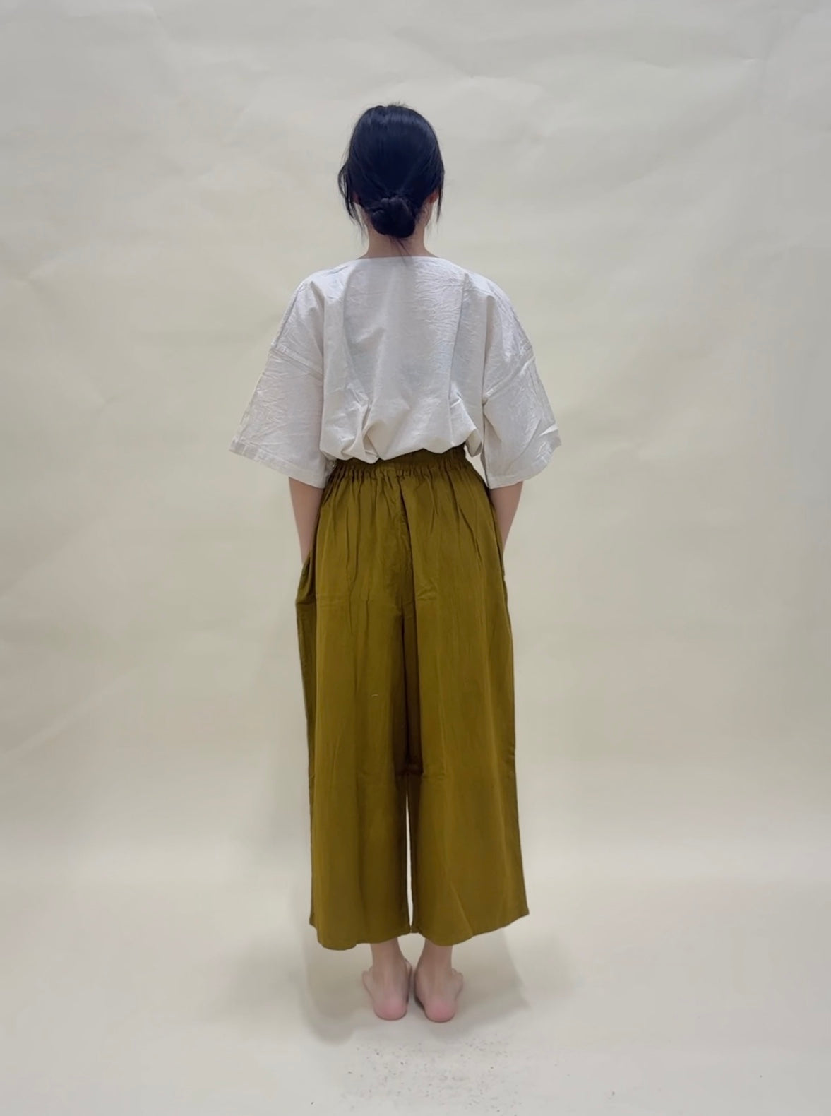 The garments are handmade by neighbourhood seamstresses and treated in natural plant enzymes prior to the hand-dyed process. The use of natural cotton ensures less harm to the environment.