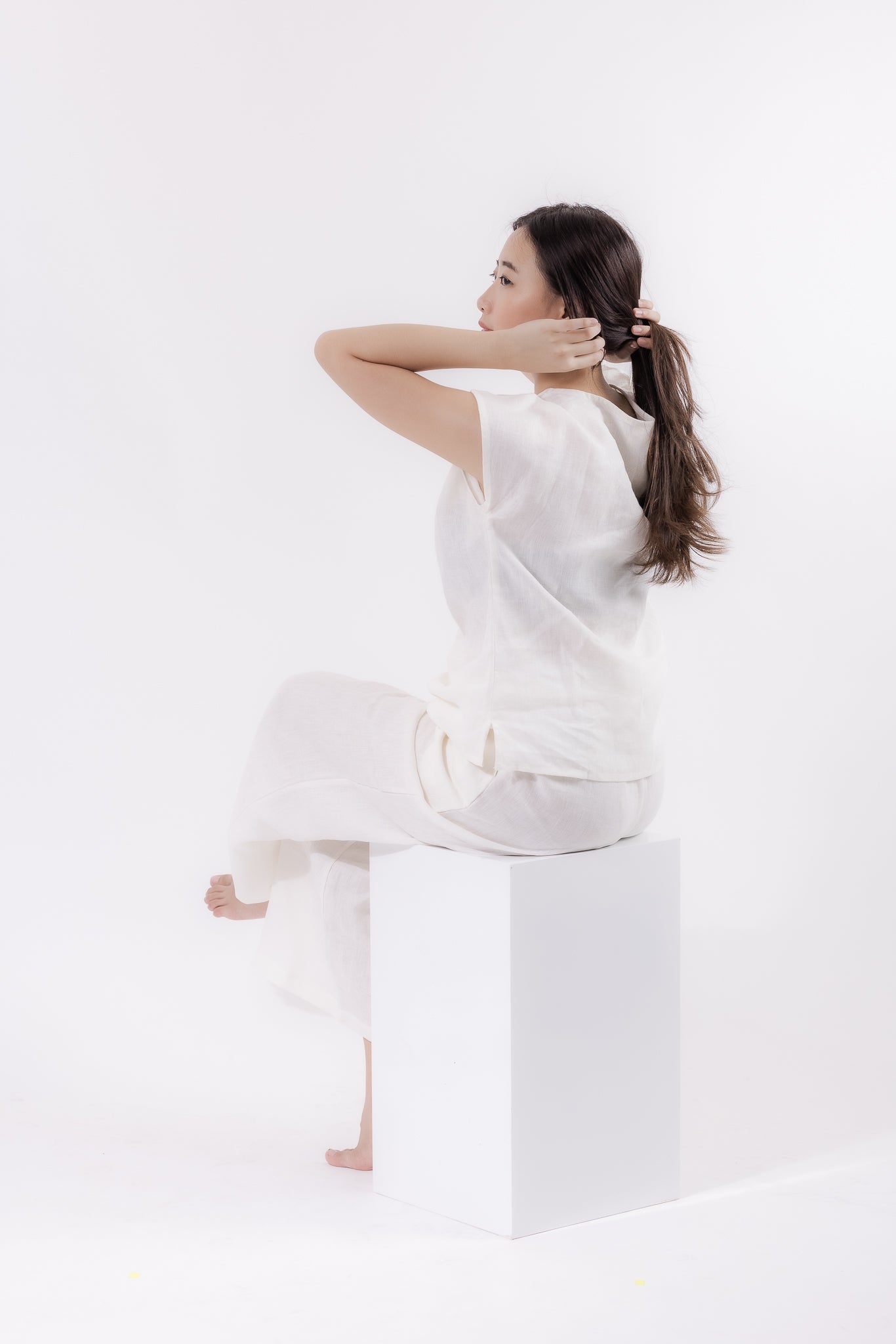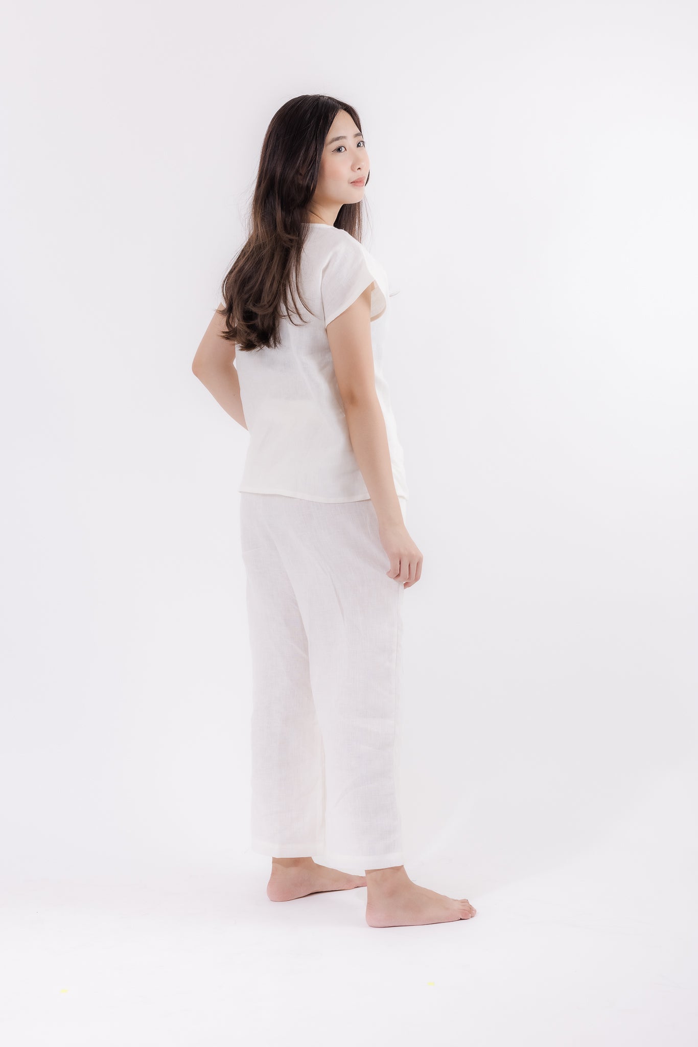 This short sleeved linen top features a boat neck design and side slits at the hem for maximum comfort. Our medium-weight linen loungewear is ideal for running errands to relaxing at home.