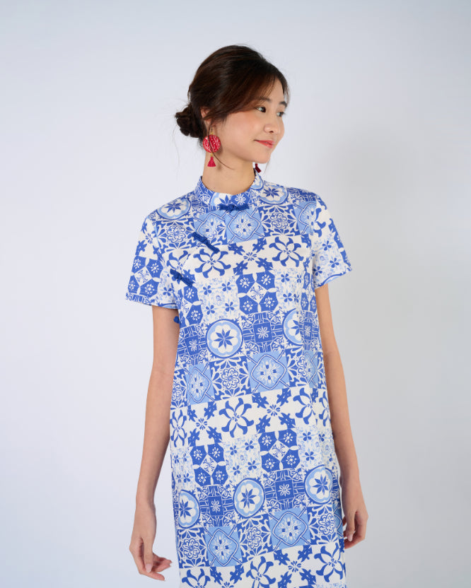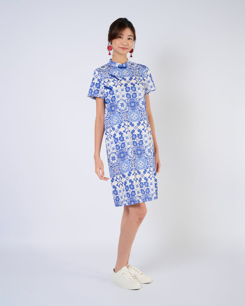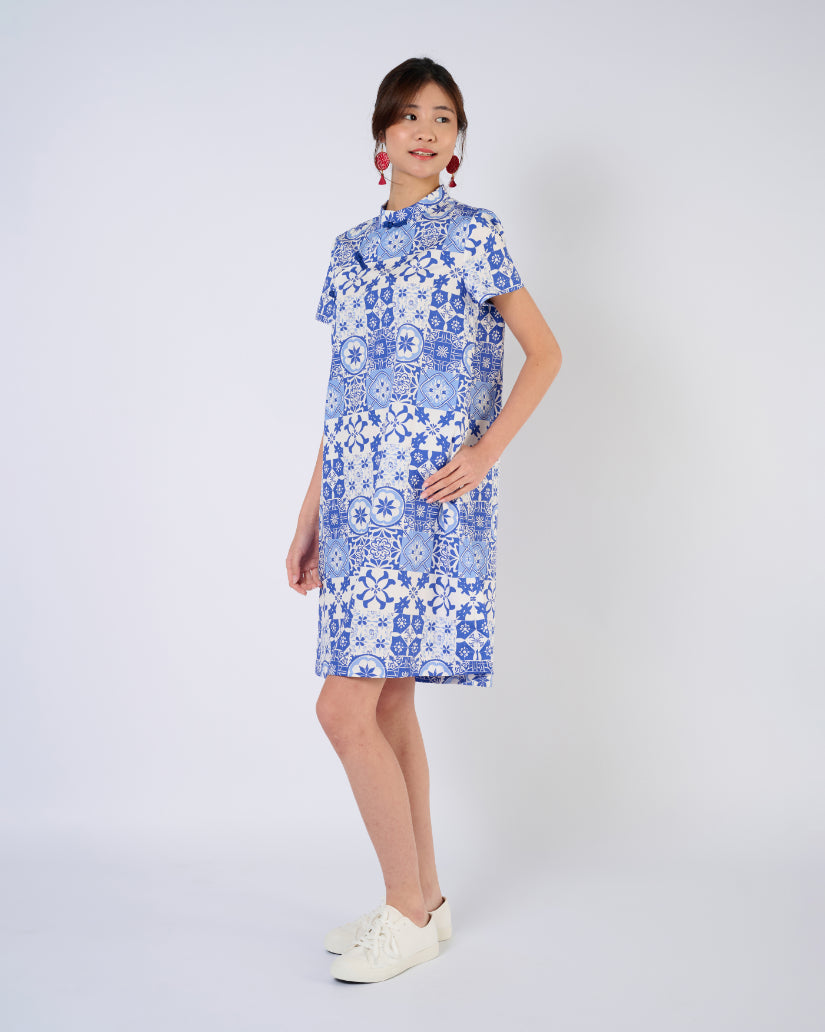 This casual cheongsam midi dress is one you'll want to reach for again and again. This silhouette features a relaxed fit, two side pockets and short sleeves, as well as handmade Chinese frog buttons. Wear this number on its on or as a long top with matching bottoms.